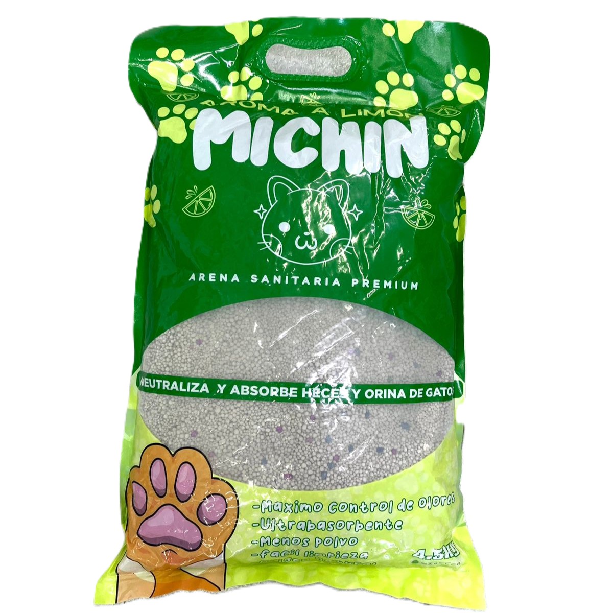 ARENA PERFUMADA DE ALTA ABSORCIÓN QUE CONTROLA OLORES DE ORINA Y HECES, FORMA TERRONES COMPACTOS PARA UNA LIMPIEZA FÁCIL Y PROLONGA LA HIGIENE DEL ARENERO. IDEAL PARA HOGARES CON UNO O MÁS GATOS. USO: RELLENAR EL ARENERO CON 6-8 CM DE ARENA Y RETIRAR RESIDUOS DIARIAMENTE. PRECAUCIONES: MANTENER ALEJADO DE NIÑOS Y ALIMENTOS, NO INHALAR POLVO.